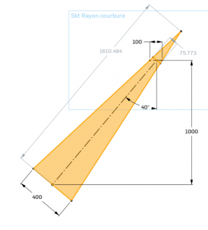 La plage angulaire de focalisation de la facette est liée à la largeur d'entrée du concentrateur secondaire ç laquelle il faut ajouté l'élargissement du à la dispersion angulaire. Le rayon de coubure optimum provient découle d'un compromis entres ces trois caractéristiques. On peut en premier :